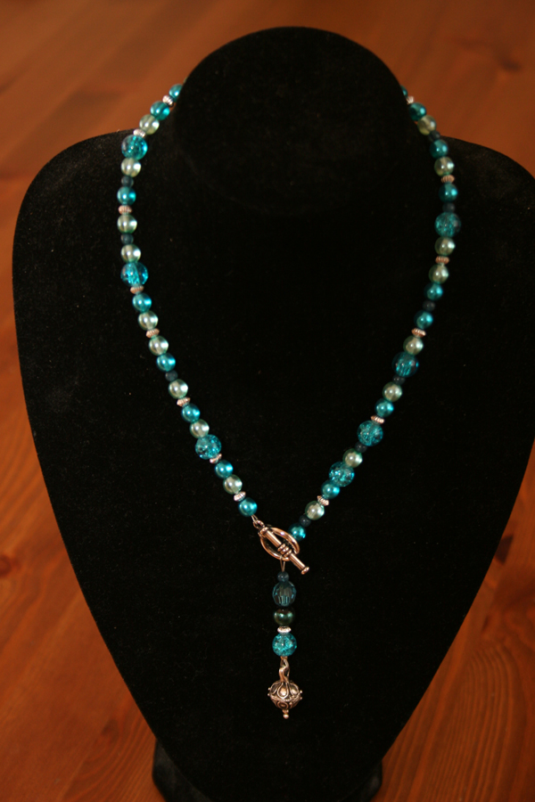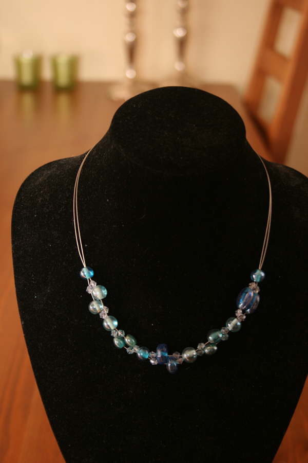 Meine allererste verschlungene Kette war aus blauen Glasperlen sowie Acrylschliffperlen und noch nicht unbedingt ein Meisterwerk, aber trotzdem zeige ich sie Euch. Schließlich fängt jeder in allem klein an und daran ist nichts verkehrt.