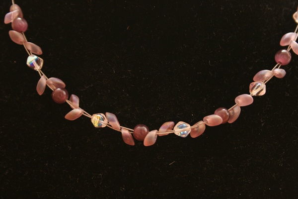 Auch eine violette Kette ist dabei, hier u.a. mit Magatama-Perlen: