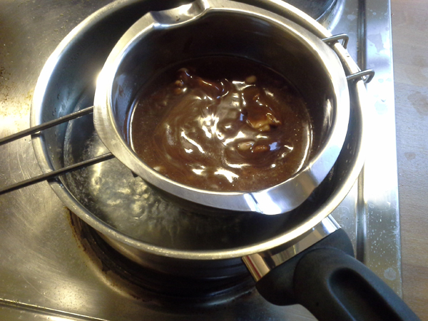 Die 4 Eiweiß (oder Eiweiße? Duden ist da unklar…) zu einem steifen Schaum schlagen. Nach und nach 2 dl Zucker unter Rühren hinzufügen. Die Masse auf den Kuchen spritzen, gerne gitterförmig. Da ich meinen Spritzbeutel nicht finden konnte, musste ich improvisieren. Eigentlich sollten die Streifen schmaler werden… Dann den Kuchen nochmal für ca. 10 Min. im Ofen backen.